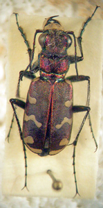 ♂ и ♀ Cylindera (s. str.) obliquefasciata ssp. obliquefasciata (Adams, 1817) КИРГИЗИЯ: Ц. Тянь-Шань, дол. р. Кёкё-Мерен, h = 1422 м, N 41'44'' E 75'14'', на свет, 1.VII.2008 В.В. Аникин leg., А.С. Сажнев det., 2009. УЗБЕКИСТАН: Самарканд, 1923 сборы СГАУ, А.С. Сажнев det., 2010. |