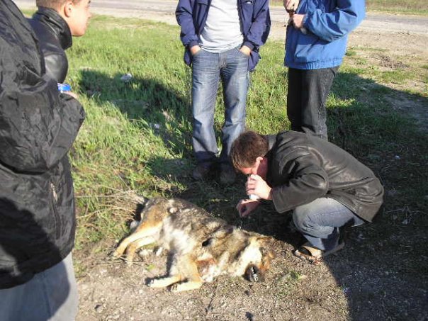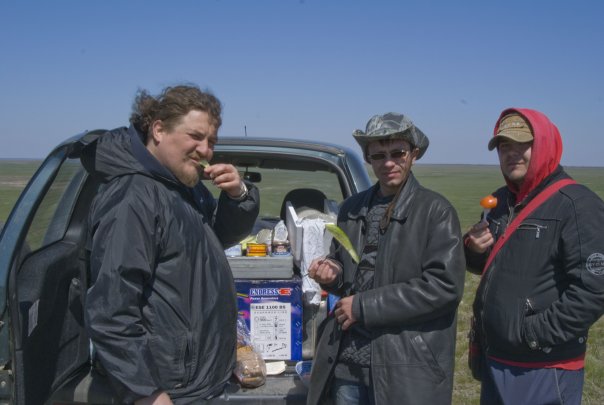 Продолжаем свой путь. С Денисом договорились, что если увидим на обочине какое нибудь сбитое животное, то неприменно остановимся и возьмем в качестве приманки для некрофагов, но попалась лишь сбитая лиса, а подхватить вирус бешенства как то не прельщало, поэтому останавливаться не стал. Проезжаем мимо казахской семейки, что пили чай на крутом косогоре обочины. Мысленно озаглавил эту картину: «и пусть весь мир подождет!» Их «Шнива» дожидалась окончания священного ритуала на дороге.